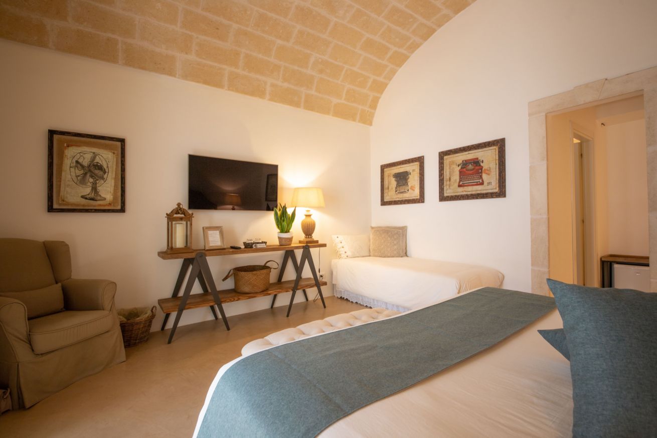 La nostra Junior Suite finemente arredata, originale ed unica è dotata di ogni comfort dalla TV satellitare con schermo piatto all' internet free. La biancheria da letto di alto pregio e il letto king size garantiscono il massimo dello charme.